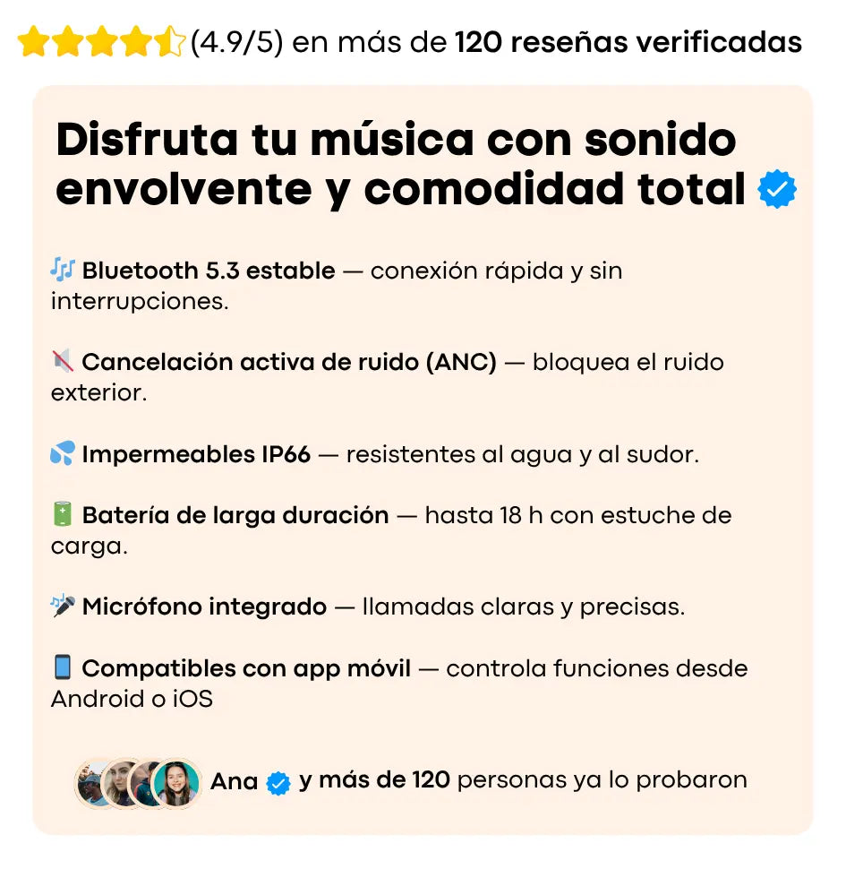 ⚡ Hasta 18 horas con el estuche de carga completamente cargado