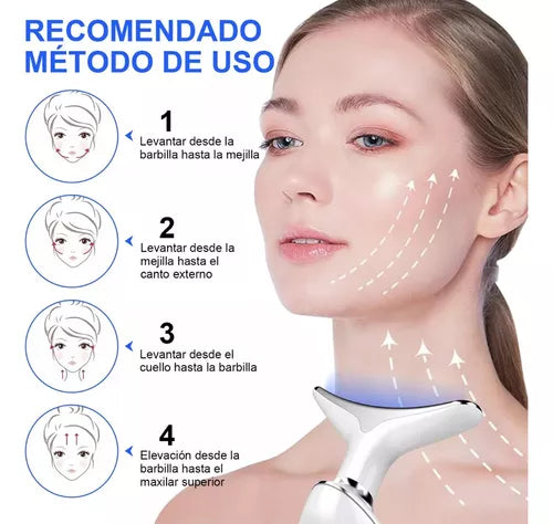 Masajeador de microcorriente con calor y LED: reafirma la piel y proporciona un lifting visible desde el primer uso.