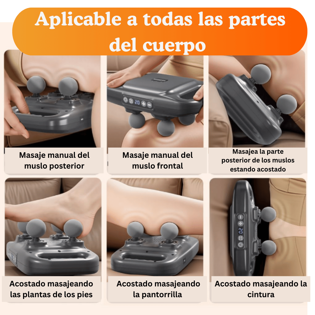 Ajusta la fuerza y el ritmo del masaje según lo necesites. Desde relajación suave hasta recuperación muscular post entreno.