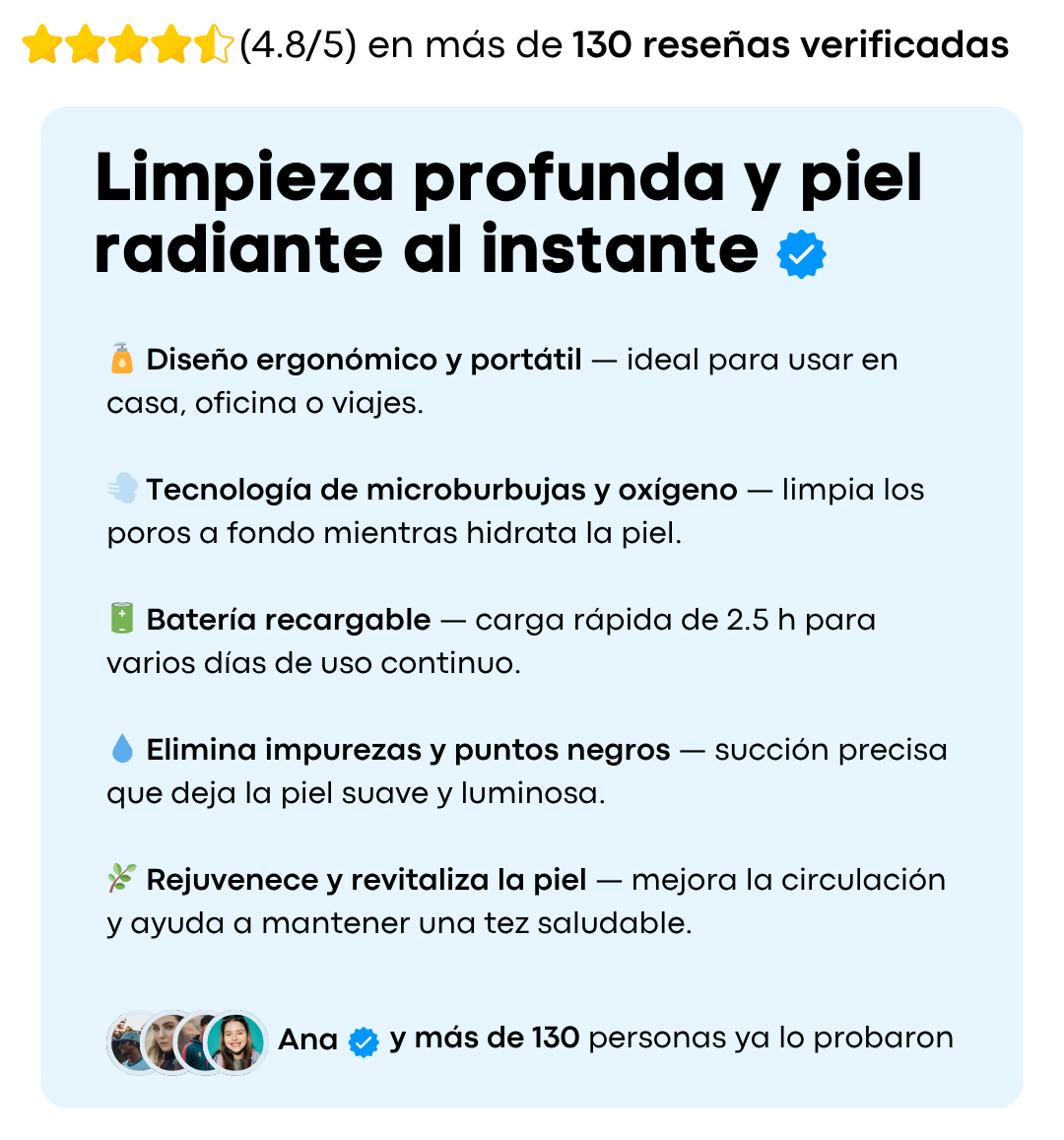 No 😊. El X17 utiliza una succión suave con microburbujas y oxígeno, diseñada para limpiar sin causar dolor ni enrojecimiento.